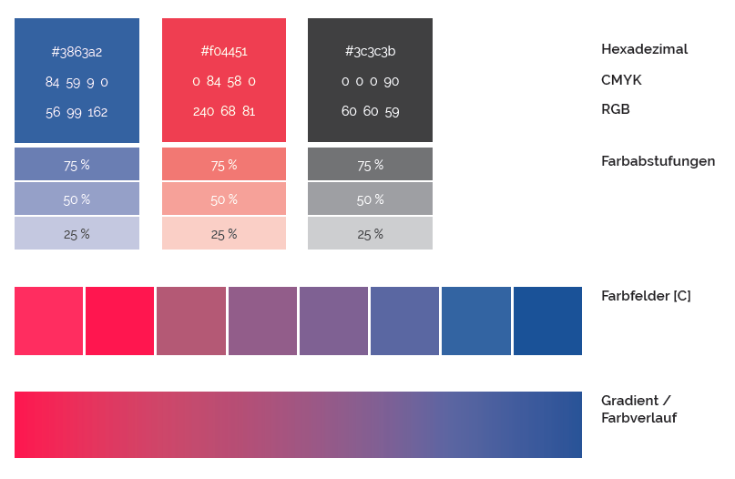 he CorrelAid logo picks up the colour spectrum from green to blue. The colour spectrum of the CorrelLAB logo ranges from blue to a strong shade of pink. The color red is primarily used in the logo design of CorrelAid X (cities / regional organizations). In addition, dark grey is used as a contrast color. Please adhere to the given colour values in future designs and representations in order to keep our products combinable.